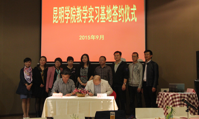 9月17日,开云kaiyun官方网站与昆明市大观公园、昆明市导游协会在旅游学院酒水实验室举行教学实习基地签约仪式。来自昆明市大观公园的谢长勇书记、徐昊天工会主席一行;昆明市导游协会李伟秘书长一行到会参加了签约仪式并座谈。校长助理马银海、教务处副处长常进荣、旅游学院党政领导等参加。仪式由旅游学院院长田芙蓉主持,旅游学院导游教研室全体教师列席。