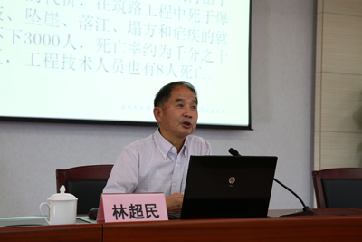林超民教授用翔实的历史事实、严谨的学术态度和幽默风趣的学术话语向与会师生作了具体、生动的阐释。林教授用“血战、血线、血山、血城、血性”五个鲜明的关键词,概括了云南民众艰苦卓绝的抗战斗争,再现了抗日战争中涌现出来的周保中、罗炳辉等大批云南籍名将;云南民众艰苦卓绝打通抗战生命线——滇缅公路,用鲜血筑成抗战交通血线;用鲜血和生命谱写了气壮山河的悲壮诗篇龙陵松山战役;腾冲之战,“攻城战役,尺寸必争,处处激战,我敌肉搏,山川震眩,声动江河,势如雷电,尸填街巷,血满城垣”;无私奉献,不怕失败愈挫愈奋的顽强意志,不畏强敌公忠体国的民族气节,万众一心共御外侮的民族团结精神,宁为玉碎毁家纾难的献身情怀,联合世界反法西斯力量的同舟共济友好合作浩然气度的云南民众在抗日战争中展现的血性。