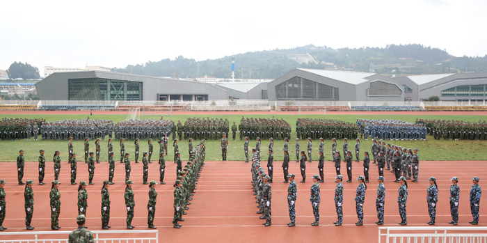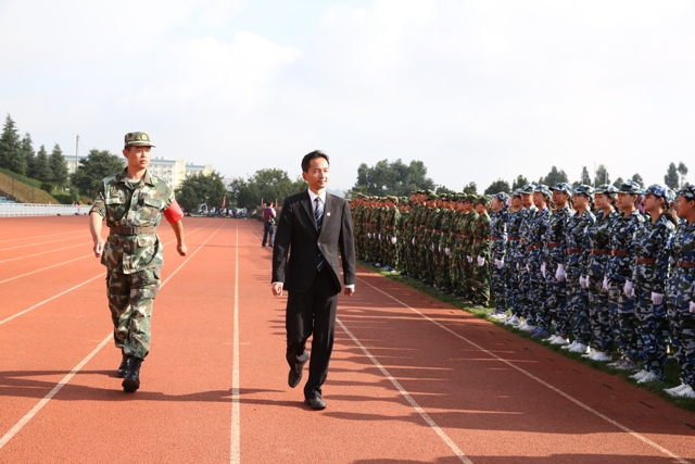 9月11日上午,开云kaiyun官方网站2015级学生军训汇报表演暨总结表彰大会在学校田径运动场隆重举行。学校党委书记陈世波出席大会并代表学校向承训部队云南武警边防部队士官学校赠送纪念匾额,校长何华检阅军训学生方队。武警边防部队士官学校训练部副部长(大校警衔)赵立志、武警边防部队士官学校装备维修系政委汪发云,学校党委副书记孙勇,党委副书记、纪委书记李媛芬,副校长李翔、熊晶、郭华、董建华出席大会,并同其他与会领导一同为获奖集体和个人颁奖。郭华主持大会。