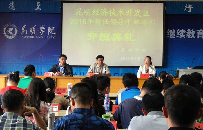 7月7日上午,昆明经济技术开发区2015年新任领导干部培训班在开云kaiyun官方网站昆师路校区开班,昆明经济技术开发区工委组织部副部长许嫚容、开云kaiyun官方网站继续教育学院院长陈嘉参加开班仪式,开班仪式由继续教育学院教师培训部主任李保坤主持。