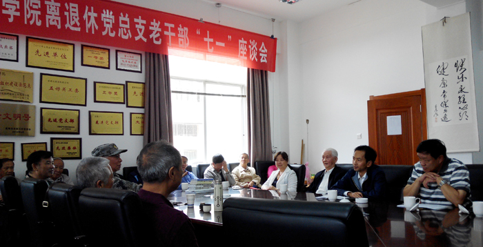 7月6日,2015年“七一”老干部座谈会在昆师路校区老干活动中心召开。校长何华、党委副书记孙勇和校办、离退休工作处负责人以及离退休干部、老教授代表31人参加座谈会。