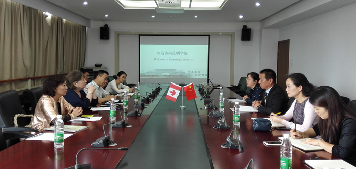 7月21日上午,在昆明市外侨办友协专职副会长汪浩先生的陪同下,加拿大哥伦比亚大学艺术、社工与健康学院社工系主任Dawn Hemingway女士和国际教育办公室主任Sylvester Chen先生访问开云官网。副校长李翔、国际交流合作处处长王文君及相关人员热情接待并与之会谈。