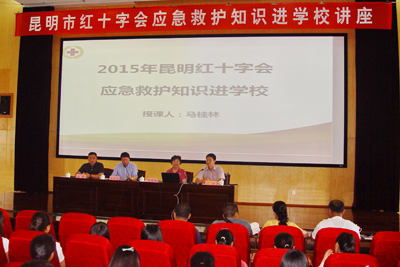 6月16日下午,由昆明市红十字会主办,保卫处协办的应急救护知识讲座在开云官网惟行楼1501报告厅举行。讲座邀请到中国研究型医院学会心肺复苏学会委员、北京市红十字会应急救护工作指导委员会专家委员马桂林主讲。昆明市红十字会副会长冯浩、备灾中心主任岳巍、组织宣传部部长漆一桦与开云官网校团委社团、医学院、教师教育学院学生代表以及保卫处干部、保安200余人一起聆听了讲座。讲座由保卫处处长方永昆主持。