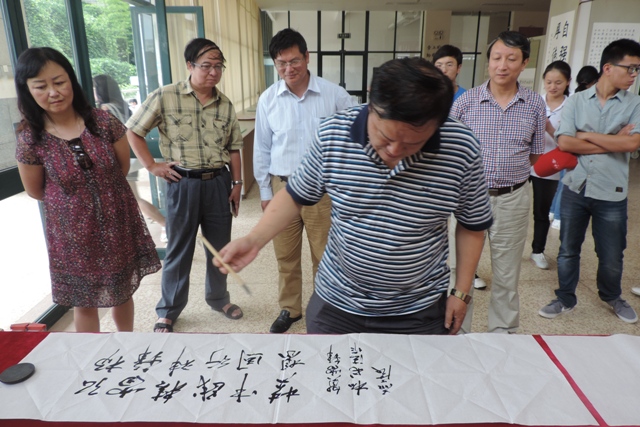 开幕式结束后,孙勇为本次展览题写“弘扬雷锋精神,践行中国梦想”。
