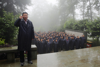 29日上午,怀着对杨善洲老书记无比的敬意,陈世波书记带领全体领导干部向杨善洲墓碑塑像鞠躬致敬,并敬献花篮,庄严地重温入党誓词,瞻仰杨善洲陵墓。随后,参观了老书记故事碑林和“善洲小道”,参观了老书记曾经工作过老场部、居住了近十年的老窝棚、使用过的劳动工具,参观了老书记生平事迹展览馆和那片他22年用心血浇灌的5.6万亩林场。参观完之后,陈世波与随行的领导干部一道,亲手培土、浇水种下三棵纪念树,用实际行动表示对杨善洲同志的深切怀念。