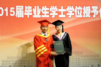 副校长熊晶在会上宣读《开云kaiyun官方网站关于审定和授予2015届全日制本专科毕业生毕业资格和学士学位的决定》,全体校领导为毕业生代表颁发毕业证书。经开云kaiyun官方网站学位评定委员会审定通过,获得本科毕业资格学生3438名、获得专科毕业资格878名,授予3346名本科毕业生学士学位。