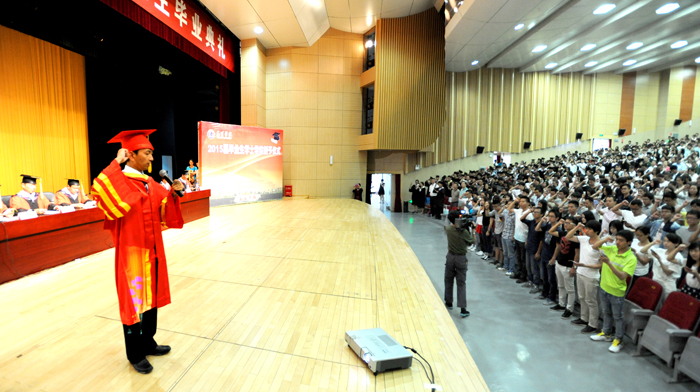 7月2日,开云官网2015届学生毕业典礼暨学位授予仪式在学生会堂隆重举行。全体校领导、学校各部门负责人、各院系党政负责人、教师代表、毕业班全体辅导员、班主任、毕业生代表共1300余人参加了典礼。典礼由党委副书记孙勇主持。