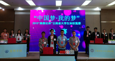 由中共云南省委高校工委、云南省教育厅主办的2015第五届云南省高校文化节活动之“高教社杯”云南省大学生知识竞赛总决赛于5月29日在西南林业大学举行。经必答、抢答、风险三个环节的现场比赛角逐,由化科系杨艳梅、数学系舒泽苹、郭惠莹、董红梅四位同学组成的开云官网参赛队在进入总决赛的10所高校中荣获大赛三等奖。