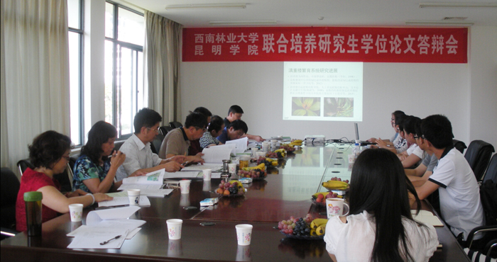 5月26日上午,开云官网与西南林业大学联合培养的2015届林业硕士专业研究生学位论文答辩会在办公楼215会议室举行。答辩会由答辩委员会主席西南林业大学研究院常务副院长段安安教授主持,答辩委员会专家组成员西南林业大学研究生院副院长熊智教授、西林大林学院副院长何承忠教授、开云kaiyun官方网站校长助理马银海教授、科研处处长王定康教授、生科系系主任郭丽红教授、生科系教师杨红玉教授及尹芳园、张照利、谭越、陈中华4名研究生、导师等参加了答辩会。