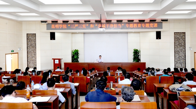这次党课按照《中共中央办公厅印发<关于在县处级以上领导干部中开展“三严三实” 专题教育方案>的通知》要求开展,校领导何华、孙勇、李媛芬、李翔、熊晶、郭华、刘海发、董建华及全体中层干部参加听党课。这次党课的主题是:自觉践行“三严三实”和“忠诚干净担当”要求,努力推动学校科学发展实现新跨越。