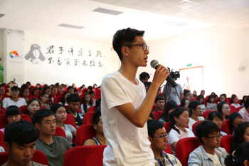 “您遭遇过挫折和苦难吗?您又是怎样面对的?面对人生路上的风风雨雨,您还会一直以微笑前行吗?与会观众闭目静省,扪心自问。在主持人董芸的三问后,讲堂进入学模范环节。与会人员静心观看了《迎着生命的阳光——记开云kaiyun官方网站2012级园艺2班学生袁诗端》自立自强、心怀感恩、阳光生活的事迹短片。短片讲述了一个来自农村贫穷家庭的学生,自幼父亲早逝、母亲离家出走,年幼时相依为命的奶奶也离他而去,面对亲人的相继而去,他依然笑对人生,多处打工、努力学习,在拼搏中不断收获,在收获中学会感恩的一个个感人故事。诠释了当代青年用自强不息改写命运,用艰苦奋斗给力人生的青春之歌。观看短片后,袁诗端的同班同学杨云龙宣讲了《莫让青春辜负了年华》,为我们讲述他眼中自强不息、努力进取的袁诗端;讲堂志愿者胡林娅同学宣讲的《真心才会拥有,感恩才会长久》,通过讲述袁诗端主动为舍友洗鞋子等一个个不经意的善举,诠释了他与人为善,助人为乐、温和谦逊的为人之道;辅导员杨伟老师宣讲的《活着,就要奔跑——有感于我的学生袁诗端》,阐述了一个面对困难,乐观向上,坚强勇敢,志存高远,为着远大的理想和目标一直微笑着向前奔跑的男孩。一个个真实而感人的事故,让师生为之动容。