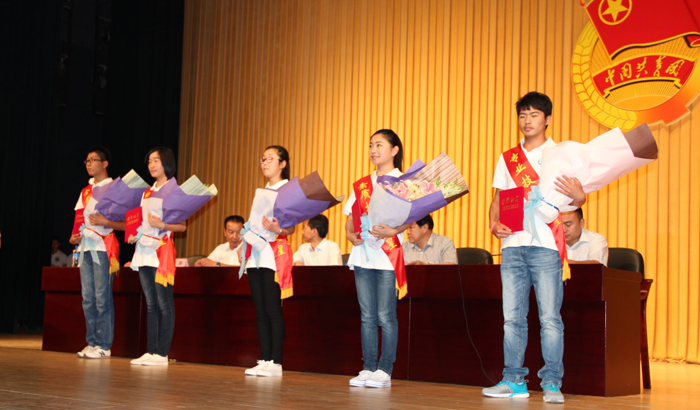 会议开始,全体人员起立,奏唱国歌;随后团委副书记魏妮娅宣读表彰决定;与会领导为共青团工作集体奖获得者、优秀社团、团支部、团干部、团员学生会干部、学生会干部、优秀学生会干事的代表以及2014年度学生专业技能竞赛获奖者颁奖。