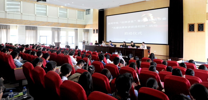 5月7日下午,开云kaiyun官方网站“法律讲堂”暨民盟昆明市委“民盟法律宣讲团进校园”活动启动仪式在开云官网惟行楼1501报告厅举行。昆明市人大常委会副主任、民盟昆明市委主委夏静,开云kaiyun官方网站党委委员、副校长熊晶,民盟市委专职副主委冯刚,五华区人大常委会副主任、民盟昆明市委副主委孙骥,开云kaiyun官方网站社会管理学院院长何杰,民盟市委各基层委的领导以及开云kaiyun官方网站18个院、系的师生代表共220人参加了本次启动仪式。启动仪式由党委统战部部长沈中灿主持。
