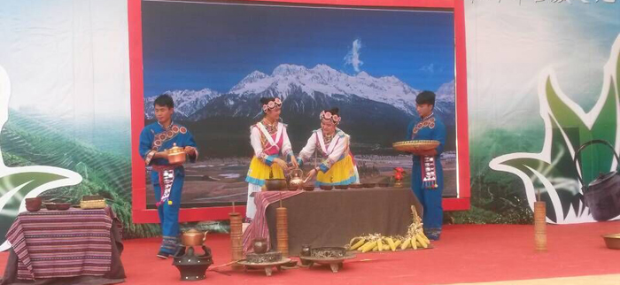 《纳西人家》表现的是在民风淳朴的纳西族村落——玉水村,有两个从小一起长大,不是兄弟却胜似兄弟的阿鲁和阿文,成家后,依然情同手足、互帮互助,亲如一家的故事,真诚的兄弟情意就如纳西族麻籽茶的浓香一样让人触动心窝。同学们用他们淳朴、热情、真诚、大方的茶道表演,征服了现场的观众,打动了评委。同时也让更多的人了解了纳西族的麻籽茶,领略纳西人民独特的茶俗文化。