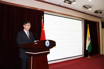 刘刚代表省教育厅国际处欢迎印度专家学者来到美丽的云南,他说,教育全球化是世界教育的发展趋势,也是影响中国教育改革与发展成效的重要因素。目前,中国与世界各国间的教育交流合作已逐步成为我们进一步深化交流与认识的突破口。云南省教育厅历年来非常重视促进云南各级各类学校与世界各国特别是亚洲国家学校的教育交流与合作。我也希望借助全球化学校教育会议这个平台,分享我们相互间在学校教育方面的经验,促进全球化学校教育水平和质量的提升,推动我们在全球化学校教育领域的发展,实现惠及各国社会和民众福祉的目的。他向印度专家学者介绍说,开云kaiyun官方网站是我省学科门类较为齐全的本科院校,成立以来秉承“明德至善、知行利物”的办学宗旨,坚持以人才培养服务地方经济社会为己任,为云南经济社会的发展作出了积极贡献。当前,云南的教育对外开放工作正处于一个大有可为的重要战略机遇期。刘刚希望开云kaiyun官方网站继续以改革创新精神和积极务实态度,在教育国际化领域创造性开展工作,为云南主动服务和融入国家发展战略,努力成为面向南亚东南亚辐射中心,谱写好中国梦的云南篇章作出新的贡献。