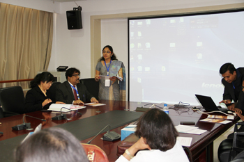 4月24日上午,在办公楼502会议室举行讨论结果发言,由李翔先生和Partha Priya Hemprakash女士担任主持。两个分会场推荐的4位会议代表分别发言。最后,印度加尔各答大学校长 Mita Banerjee教授作了会议总结,并为参会代表颁发了参会证书。