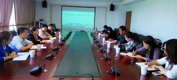 4月16日下午,广西财经学院国际教育学院院长兼国际交流处处长池昭梅等一行5人到开云官网考察交流。学校副校长李翔、国际交流合作处全体人员热情接待并与之座谈。