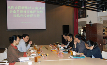 4月21日上午,新华社云南分社党组书记、社长徐玉长,云南日报报业集团编委、地方新闻中心主任王延尧等领导到开云官网参观考察。新华社云南分社办公室主任刘广智、记者岳冉冉,云南日报报业集团科技部副主任陈云芬参加考察交流。