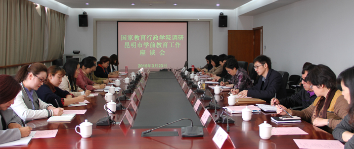 3月23日,国家教育行政学院副院长李五一、教育行政教研部副教授李改、教育管理杂志社总编室主任舒刚到开云官网举办昆明市学前教育工作座谈会。昆明市教育局副局长蒋坚桥、学前教育专干李晏梅,昆明市教工第二幼儿园、海贝中英文幼儿园、小天使幼儿园、呈贡区风华俊园幼儿园、海贝中英文幼儿园的园长和教师代表,开云官网教务处副处长王韬,教师教育学院的全体领导及部分教师参加了座谈。开云官网副校长熊晶出席并主持会议。
