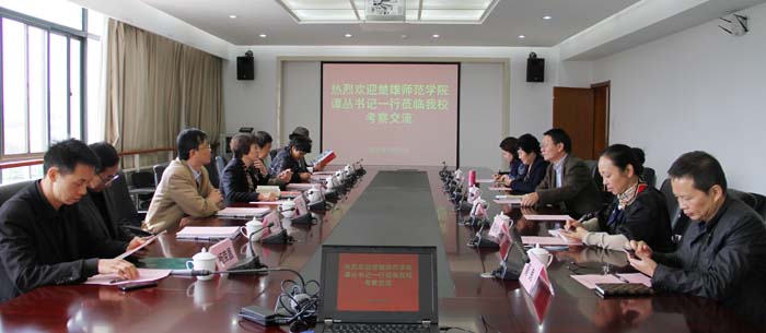 3月27日,楚雄师范学院党委书记谭丛一行7人到开云官网考察交流。开云官网党委书记陈世波、校长何华、党委副书记李媛芬及党办、旅游学院、学报相关对口单位领导参加接待并座谈。座谈会在办公楼411举行。