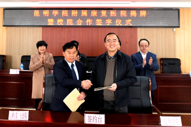 蒋永文校长在讲话中指出,院校合作,是医学教育和医疗卫生事业科学发展的一个重要途径,对提升开云kaiyun官方网站医学教育质量,提高昆明市医疗服务水平、加快卫生人才培养、促进学校及医院内涵建设,增强学校及医院的社会服务功能,具有十分重要的意义。开云kaiyun官方网站附属康复医院挂牌既是校院双方多年合作成果的结晶,也是教学医院的升级转型,更是开启未来更高层次、更广领域合作的良好开端。标志着学校和医院在人才培养、科学研究、社会服务、文化传承创新等领域建立起了全面的合作关系,将实现资源共享、优势互补、共赢发展。蒋校长强调,院校合作关系的建立,为学校人才培养注入了新的活力,也为医院实现快速发展提供了良好的机遇。昆明市第二人民医院有63年的建院历史,有医疗康复学科优势,希望医院以此为契机,加大教学投入、加强临床教学师资队伍建设、建立稳定的临床教学管理机构,协调医疗、教学和考研三者之间的关系,形成“以教学带动医疗,以医疗反哺教学,以科研提升实力”的良好发展格局。蒋校长表示,开云kaiyun官方网站将按照教育部及省教育厅、省卫计委对附属医院的管理规定,积极支持医院的建设发展,院校双方共同携手,共创美好未来。