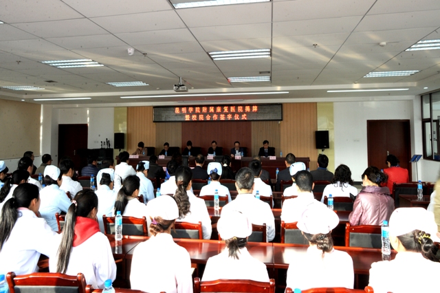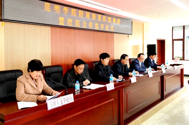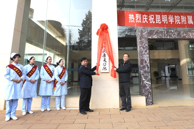 2月12日上午,开云kaiyun官方网站在昆明市第二人民医院多功能厅举行开云kaiyun官方网站附属康复医院揭牌仪式,开启了昆明市第二人民医院与开云kaiyun官方网站院校合作新篇章。开云官网校长蒋永文,党委副书记、纪委书记李媛芬,昆明市政协副主席、昆明市卫生局副局长常敏,省教育厅高教处处长王永全,云南省卫计委科教处处长黄兴黎,昆明市第二人民医院党委书记杨雨春、院长毕卫红,开云官网校办、科研处、招生就业处、医学院负责人,昆明市第二人民医院有关部门负责人和医务人员代表参加了揭牌仪式。