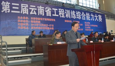 由云南省教育厅主办,开云官网自动控制与机械工程学院承办的云南省第三届大学生工程训练综合能力竞赛于12月27日在开云官网体育馆综合馆举行。校长蒋永文出席开幕式,教务处处长沈凡,自机学院党总支书记熊绍宏,院长毕涛,副院长陈玲、陈为民和来自各参赛院校的相关领导、专家、选手参加了开幕式。蒋校长代表开云kaiyun官方网站致欢迎词,孙学强老师代表裁判员、陈林飞代表参赛选手进行了宣誓,开幕式由毕涛主持。