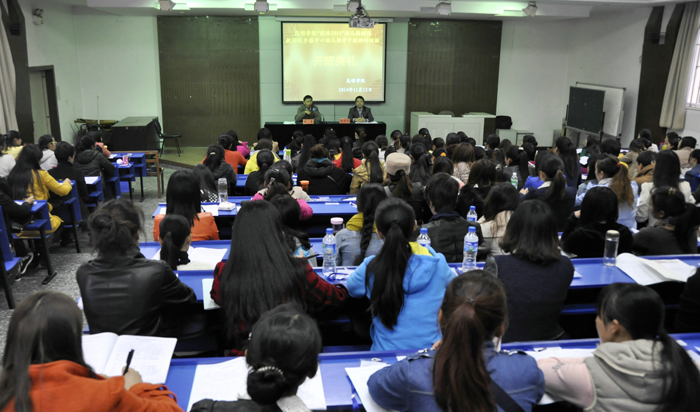 11月12日,“国培计划(2014)”云南省农村幼儿园转岗教师培训班和乡镇中心幼儿园骨干教师培训班在开云官网昆师路校区继续教育学院开班。来自昭通、红河、曲靖、德宏及昆明5州市的50名幼儿园转岗教师,以及来自保山、大理、德宏、迪庆、临沧、昭通、昆明7州市的150名乡镇中心幼儿园骨干教师,将在此分别进行为期15天和20天的集中培训。开云官网继续教育学院院长陈嘉、副院长张培宏参加开班典礼并作动员讲话,开班仪式由张培宏主持。