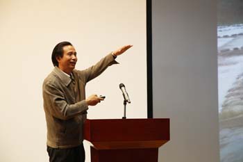 四是政界、学界共同研讨云南高原湖泊流域生态文明建设。下午3点,“云南高原湖泊流域生态文明建设学术研讨会”在博文楼旅游管理综合实训室举行。开幕式上,蒋永文校长首先致辞。蒋校长对学校多年来充分发挥学校学科专业和智力资源优势,积极开展地方性科学研究,不断拓展学校的社会服务内涵,引起社会反响等情况做了介绍。蒋校长还对中央财政支持的“滇池流域生态文化博物馆”的建设目标做了阐述。他同时指出,通过三年多的研究与建设,我们对滇池流域传统文化中的生态元素、民族文化中的生态个性、居民习惯和经验中的生态认知进行了发掘、整理和系统化,初步奠定了构建滇池(湖泊)流域生态文化体系的基础,博物馆的建成,仅仅是对滇池流域生态文化研究的起步与推进。为此,蒋校长在致辞中倡议云南省高原湖泊所在各级政府、高校、科研院所和企业,联合成立“云南高原湖泊生态文明(或生态文化)建设研究会”。他认为有了这样一个平台,不仅可以进一步促进高原湖泊生态文明建设研究,更好地为治理保护高原湖泊献计献策,而且更重要的是可以集合力量、整合资源,培养本土专家学者,形成“云南智慧”、“云南声音”,促进“七彩云南”生态文明建设。