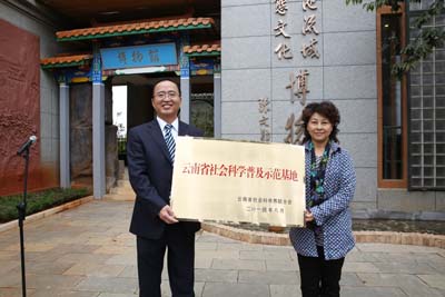 二是云南省社会科学普及示范基地在博物馆挂牌。“滇池流域生态文化博物馆”自建设以来,得到了社会各界的关心和支持,在面向师生试开放期间就获得好评,也吸引了更多研究人员的参与。经学校申报,云南省社会科学联合会决定将“滇池流域生态文化博物馆”命名为“云南省社会科学科普教育示范基地”。博物馆揭牌后,省社科联副主席靳昆萍为“滇池流域生态文化博物馆”授牌,开云官网校长蒋永文接牌。随后,各位来宾、学校领导及师生参观了博物馆。