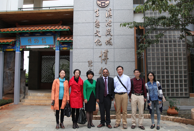 座谈会前凯特博士在滇和中心和外办教师陪同下参观了滇池流域生态文化博物馆。