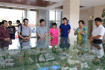 交流座谈前,陆平书记一行在熊晶副校长的陪同下,认真地参观了校园建设和专业实验室。来到校园建设规划沙盘前,熊晶副校长介绍了校园建筑建设布局、设计理念、校园水系生态建设和各建筑设施功能等情况。在相关实验室负责人的介绍下,陆书记一行还参观了证券投资仿真实验室、国际贸易综合实验室、财务ERP综合模拟实验室、金蝶ERP工商管理实验室、烹饪与营养实验室、旅游酒水实验室、城市轨道交通运营技术实验室、3D仿真打印实验室、污水净化系统、人体生命科学馆、ICU中心、特色植物科技种植展示温室等专业教学设施和场馆。每到一处,陆书记均围绕如何利用、发挥高校优势,促进当地经济社会发展等问题对设备的功能、效益等情况作了详细咨询和了解。