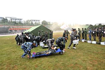 总结大会上,蒋永文校长首先检阅了2014级学生军训团受阅方队。随后,学生军训团的分列式、队列操、擒敌拳、战伤救护、消防演练等科目逐一登场表演。同学们的热情与精彩汇报,突显出同学们的顽强斗志,同学们精彩纷呈的表演和教官们的有序指挥赢得了学校领导、部队首长以及现场同学们的阵阵掌声和好评。
