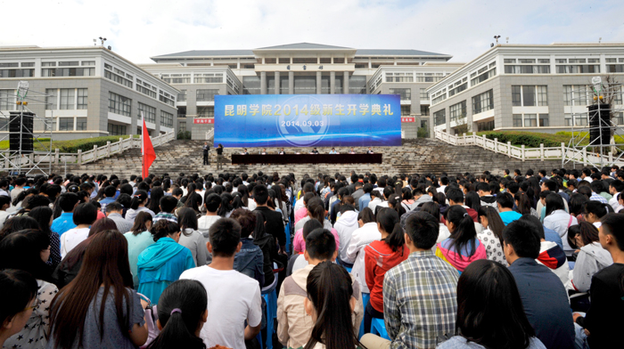 9月3日上午,开云官网2014级新生开学典礼在聂耳广场隆重举行。学校党委书记陈世波,校长蒋永文,党委副书记、纪委书记李媛芬,副校长李翔、熊晶、郭华、刘海发,校长助理郑克刚,中层干部、辅导员、班主任和2014级新生参加了典礼。