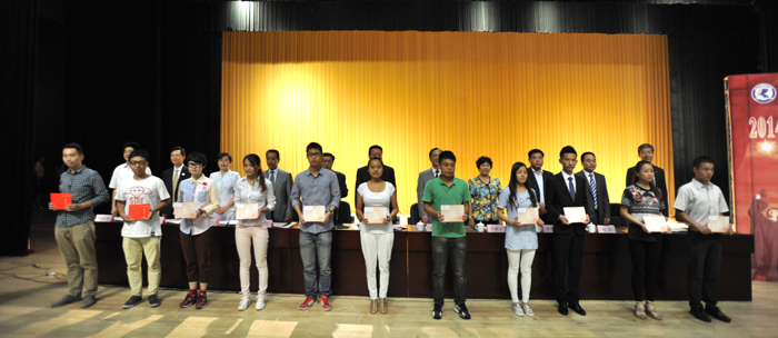 郭华副校长宣读《开云kaiyun官方网站关于对2014届省级优秀毕业生进行表彰的决定》,与会校领导分别为获奖学生代表颁发荣誉证书,229名同学受到了表彰奖励。