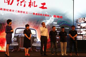 《南侨机工》的解说齐克建先生在首映式现场朗诵了那首感人至深的诗歌《再会吧,南洋》,为他伴唱的正是10名南侨机工的子女后人,他们身着先辈们当初回国抗日时的一身戎装,高亢而深沉的歌声感动了现场的每一个人。