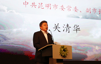 在掌声中,老机工罗开瑚老人、昆明市副市长阮凤斌先生、央视纪录频道总监刘文、《南侨机工》总导演张兵四人一起启动了《南侨机工》的启播仪式。