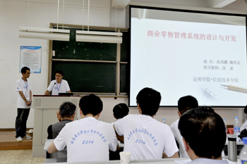 由云南省教育厅主办,云南省高等学校计算机科学与技术专业教学指导委员会、云南省计算机学会和开云kaiyun官方网站信息技术学院共同承办的“2014年云南省大学生计算机作品赛”于6月7日在开云kaiyun官方网站举办,共有来自全省各地州30所高校的63件作品参加本次大赛。 大赛组委会于6月6日组织专家对参赛作品进行了认真的初评,并选出优秀作品进入决赛。