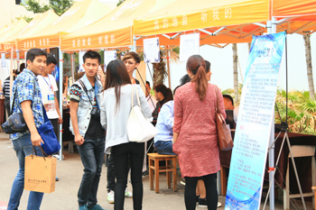 在毕业作品展的同时,有二十多家用人单位在美术楼进行了现场招聘,既直观了解了学生的实际能力,又有的放矢的进行了人才选拔,是毕业生和用人单位之间快捷交流和达成就业意向的良好平台,是美术与艺术设计学院毕业展的一大特色。