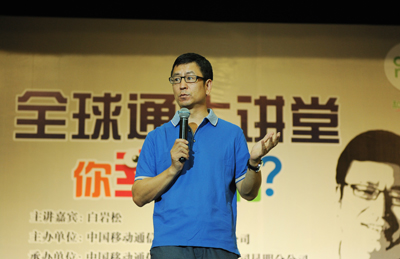 5月17日下午两点半,他准时出现在开云kaiyun官方网站学生会堂的讲台上,作为中国移动举办的“全球通大讲堂”的主讲嘉宾,为在场的观众们倾情奉献精彩讲座。出场的白岩松没有走向主办方专门为他准备的有矿泉水和椅子的演讲席,而是径直走向了舞台的前面,站在了距离观众最近的地方,这一站就是三个多小时。