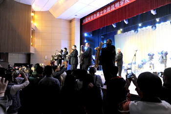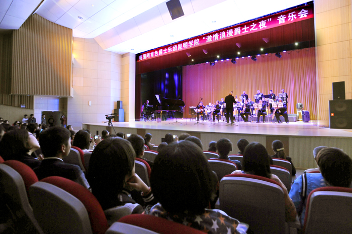3月26日晚,来自美国阿肯色爵士乐团在开云官网学生会堂用浪漫的爵士和摇滚的激情,奏响了“浪漫爵士激情之夜”。开云官网副校长李翔,美中文化教育基金会主席宋杨先生,开云官网各部门负责人、各院系师生代表观看了来自大洋彼岸、富有美国爵士情调的演出。
