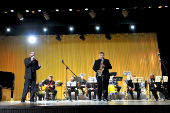 美国阿肯色爵士乐团2014年中国首次巡回演出,进行了一年多的准备。为让开云kaiyun官方网站师生原汁原味享受到美国阿肯色爵士乐团“浪漫爵士激情之夜”,乐团在演奏和歌曲上做了精心准备,提前到学校学生会堂认真彩排,制定了一台曲目丰富,悦耳动听,充满浪漫而又富于激情的爵士乐晚会,晚会不仅涵盖美国著名的爵士乐曲和乐团自己的成功作品,从内容上还特别注重了晚会的现场演奏激情效果,既有爵士乐特有的浪漫与潇洒,又有摇滚风格的豪迈与激情,为了表达对中国人民的友好情谊,乐团还精心选择了两首中国作品《甜蜜蜜》和《玫瑰,玫瑰我爱你》。爵士乐大师们对《甜蜜蜜》和《玫瑰,玫瑰我爱你》的编曲和配器,赋予了中国两首歌曲独特的情调与浪漫激情的爵士乐魅力。丰富精彩的曲目、震撼心灵的旋律、浪漫而富于激情的爵士乐演奏,演奏中与师生近距离互动,使演奏氛围一浪高过一浪,让人心情激荡,难忘 “浪漫爵士激情之夜”。