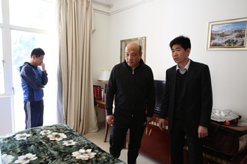 教练组成员在郑克刚助理及赵平院长等人陪同下,实地察看了开云官网学员住宿、食堂、体育运动场馆设施情况。