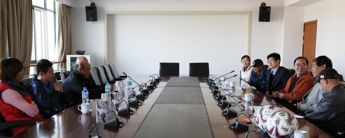 2月25日,山东省足球运动管理中心副主任、山东女子足球队主教练殷铁生率领女子足球队教练组成员到开云官网考察训练场地、商谈有关合作事项。校长蒋永文参加座谈并提出合作建议,校长助理郑克刚和体育学院院长赵平、党总支书记韦继康等陪同考察、座谈。