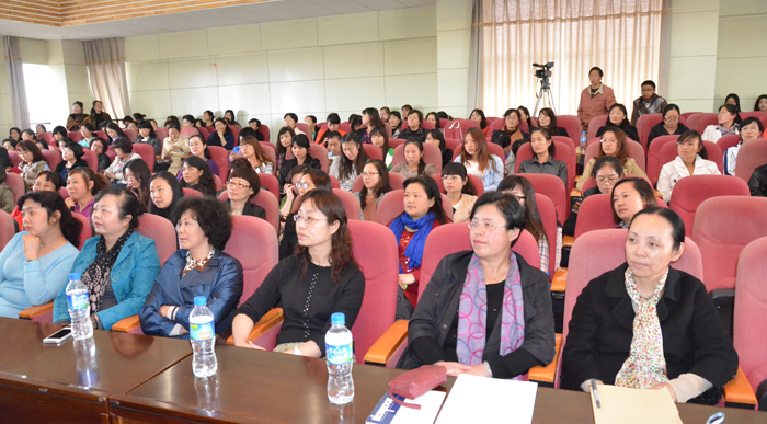 3月6日下午,校工会,校女工委员会特邀东方航空云南公司客舱部副总经理,博润礼仪工作室负责人安博润女士在惟行楼1501报告厅作庆“三八”妇女节女性魅力形象知识讲座。副校长熊晶,部分中层女干部及各分工会200余名女性教职员工、学校礼仪队的骨干参加了讲座。