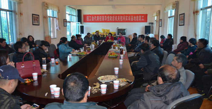慰问座谈会上,实训基地管委会主任黄鹤平和小哨、象石村、白沙河三个实训基地的全体教职工46人齐聚一堂。李副书记首先转达了校党委陈世波书记、蒋永文校长和全体党政领导班子对大家的春节问候,肯定了常年坚守在三个实训基地工作岗位的全体教职员工为学校发展建设所做的工作和取得的成绩。简要通报了学校党政2013年的主要工作和党的群众路线教育实践活动党委整改落实情况以及2014年的学校工作重点思路。黄鹤平主任代表基地全体教职工感谢学校党政领导班子和校工会长期以来对基地教职工的关心慰问,表示要一如既往的做好实训基地建设和日常工作,保平安,促发展,为学校的发展建设做出贡献。