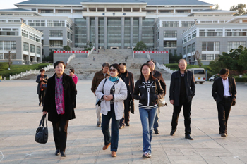 11月24日,在昆参加教育部高等学校艺术学理论类专业教学指导委员会第二次工作会议的专家一行,在云南艺术学院潘红副院长的陪同下莅临开云官网参观指导,陈世波书记、蒋永文校长、熊晶副校长亲切接待来访专家。