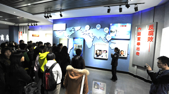 警示教育从感受“警钟之门”开始。在一楼展厅,大家观看了反腐警示教育短片《腐殇》,参观了“腐败——国之大敌、民之大敌”、“反腐败——重拳出击”、“警示启迪”三个反面典型展区,讲解员还为大家介绍了各个领域的典型腐败案例,剖析了腐败分子蜕化变质的原因及后果;在二楼阳光厅,大家通过“反腐倡廉旗帜鲜明”、“硕果累累气象新”、“风清气正彩云南”等主题展区,感受中央和云南省反腐倡廉的决心及取得的辉煌成就;在报告厅,大家观看了以原楚雄州州长杨红卫、原云南省地税局党组书记王南昆、原云南省住房和城乡建设厅副厅长陈锡诚等腐败分子严重违法违纪为主要内容的专题警示教育片《黑白人生》。