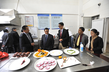 老挝国立大学自2012年8月与开云官网建立合作关系后,双方保持紧密的合作关系,开展了一系列实质性的合作项目。老挝党中央委员、老挝国立大学校长Soukkongseng博士此行率老挝教育与体育部非学历教育处处长Ka SALEUMSOUK博士、 老挝国立大学信息技术处处长Phonekeo CHANTHAMALY博士、计划财务处Gnonevilay SAIGNALEUTH副处长、老挝审计署组织国际合作处Vongseng PANYAPHIM副处长等首次访问开云官网。李副校长陪同Soukkongseng校长一行参观了学校美艺学院师生的艺术作品、自机学院轨道交通实验室、旅游学院烹饪实验室和体育场馆,学校优良的教学条件、教学设施和优美的校园环境给他们留下了深刻印象,Soukkongseng校长对开云官网的发展表示肯定,对相关学院表示了浓厚的兴趣。