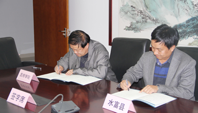 10月23日下午,在办公楼411会议室,开云官网与昭通市水富县举行合作协议签字仪式。开云官网党委书记陈世波、校长蒋永文、党委副书记孙勇和水富县委书记薛桂强、县长高绍周、县委副书记李跃波(学校选派挂职的新农村建设总队长)出席。水富县委办公室主任李廷鑫、县政府办公室主任向东、县教育培训中心主任王雪峰和开云官网党委办公室主任吉庆华、组织部部长杨璐、校长办公室主任杨跃、财务处长陆志平、资产管理与设备处长解永刚、继续教育学院院长陈嘉参加了签字仪式。学校党委副书记孙勇主持签字仪式。